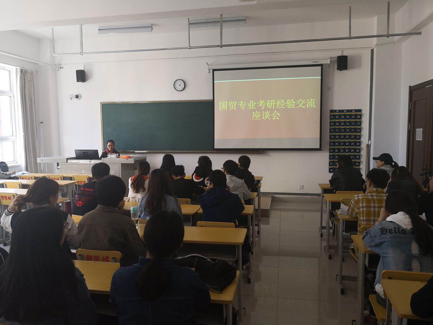 为提学生的考研积极性和考研的能力,根据学院同学的考研意向,澳门十大信誉好的网站于4月28日在崇文楼A411组织考研经验分享座谈会。本次考研座谈会由国贸系主任丰华和王淑华老师主持,2016级国贸班班长郭睿组织,邀请今年考入海南师范大学的2015级国际经济与贸易班班长徐琬儿同学为大家进行经验分享和交流互动。