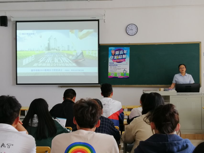 6月5日下午,新华人寿保险股份有限公司呼伦贝尔中心支公司专场校园招聘宣讲会在崇文楼305教室举行,参加本次活动的有新华保险公司人力资源部经理卢冬梅及澳门十大信誉好的网站各年级学生代表。