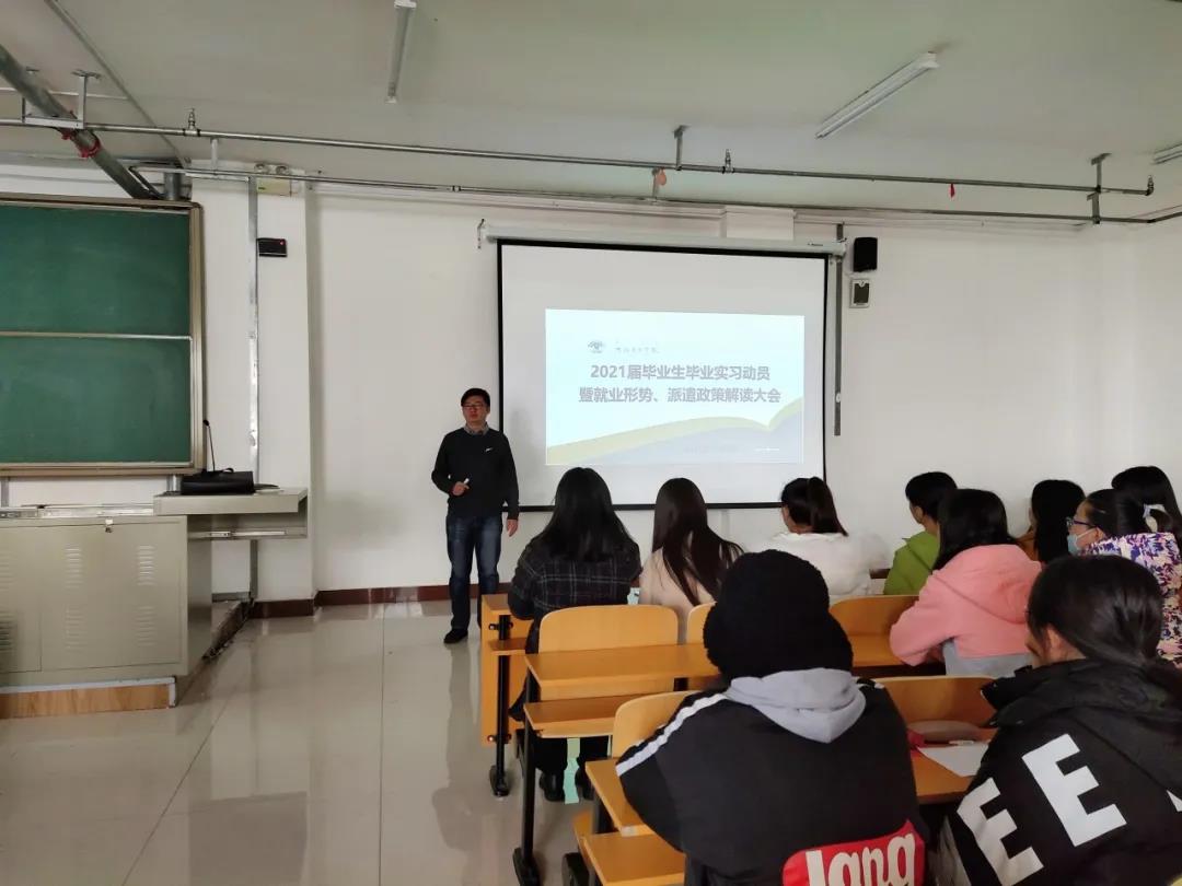 为了使2021届毕业生更好的了解就业形势,扎实推进2021届毕业生实习工作顺利开展,澳门十大信誉好的网站于11月4日上午8:30在崇文楼B401举办2021届毕业生毕业实习动员暨就业形势、派遣政策解读大会。出席本次动员大会的有澳门十大信誉好的网站副院长王英利、团学办公室主任张迪及2017级全体毕业生。