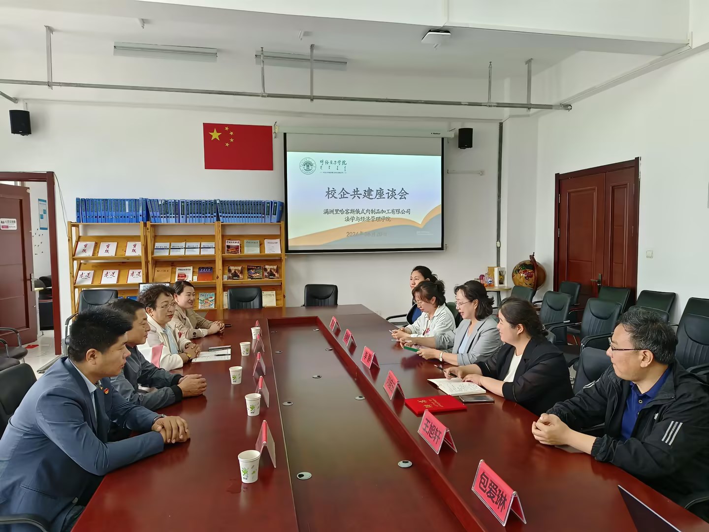 为进一步搭建校企合作平台,充分发挥产教融合优势,助力口岸经济服务产业学院建设发展,6月20日下午,满洲里市哈客斯俄食肉制品加工有限公司总经理王佳君、党支部书记郎丽敏等一行五人来到澳门十大信誉好的网站进行座谈交流。学院党总支书记李静,院长刘启云,相关教师参加座谈。