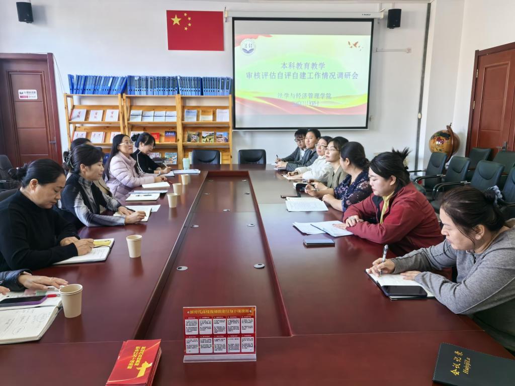 为督促推进学院本科教育教学审核评估工作的顺利推进,进一步推动迎评各项工作落细落实,11月7日下午,学校教务处处长张桂芝,审核评估专班娜布其等教师一行到澳门十大信誉好的网站调研指导本科教育教学审核评估工作,在崇文楼A308召开专项会议,法经学院班子成员、各环节干部、系主任及评估工作组成员参加会议。