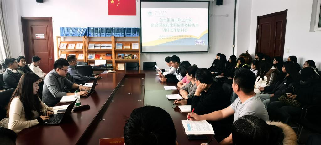 11月25日,由呼伦贝尔市商务局主办、呼伦贝尔学院澳门十大信誉好的网站承办的全市推动口岸工作和建设国家向北开放重要桥头堡调研工作培训会在呼伦贝尔学院崇文楼A座308会议室举办。澳门十大信誉好的网站师生共同参加会议,呼伦贝尔市商务局以及各旗市区商务局远程参加会议。