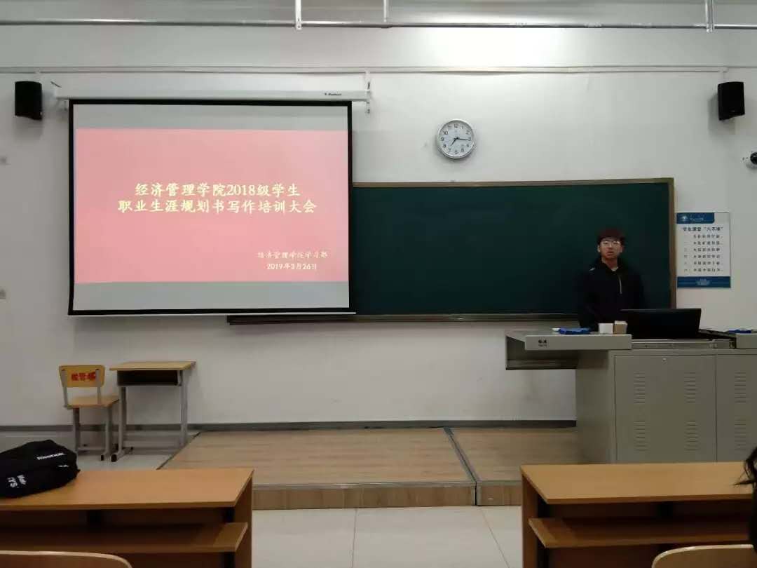 最后,曹召荥同学结合实际向同学们阐释了原理,介绍了“职业生涯规划”的意义,以及“职业生涯规划大赛”的参赛条件,提醒同学们要高度重视并认真完成自己的职业生涯规划书。