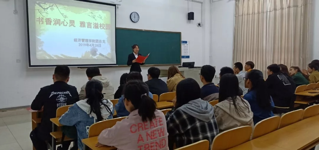 澳门十大信誉好的网站于4月28日在崇文楼A106教室开展“书香润心灵,雅言溢校园”活动。参加本次活动的人员有18级团支书及部分积极分子。