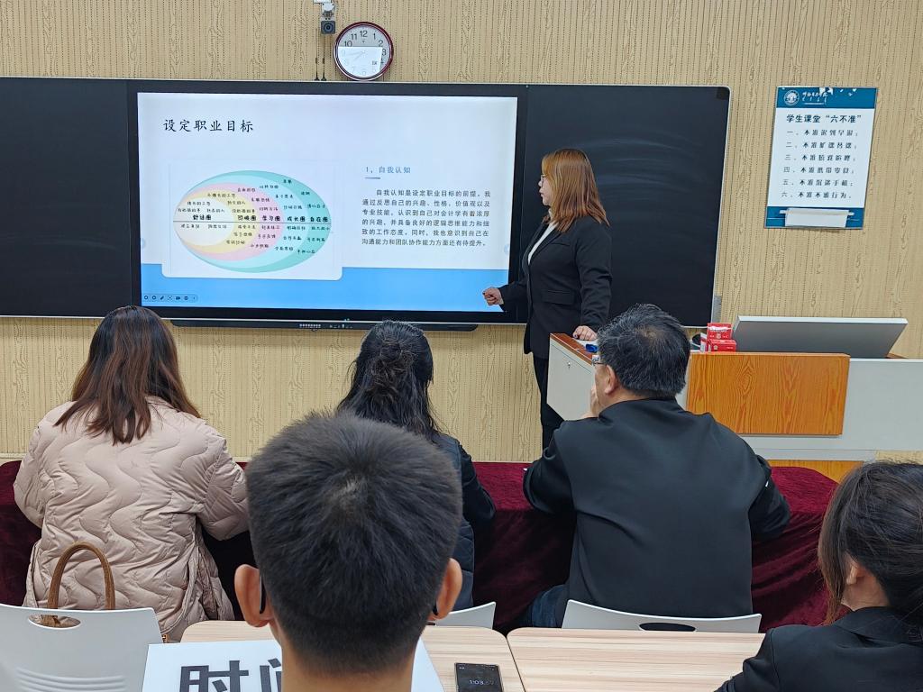 本次比赛分为成长赛道与就业赛道。同学们踊跃报名参加初赛,经辅导员重点推荐及对报名作品初步筛选,有25名选手进入决赛路演环节,最终两个赛道中分别选拔出2名优秀选手,推荐他们参加校赛。比赛中,选手们各抒己见,充分展示自己精心准备的职业规划作品。他们从自身专业出发,结合兴趣与市场需求,规划未来职业方向,并结合自身实践经验,剖析优势与不足,动态评估。