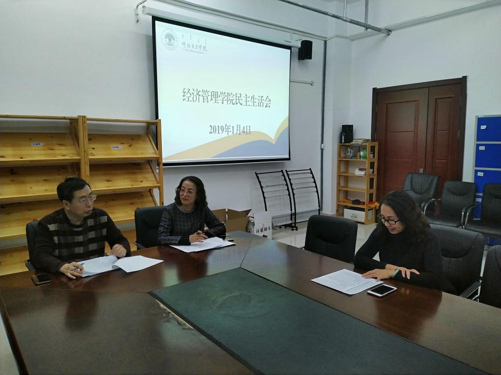 209年1月4日上午,澳门十大信誉好的网站在崇文楼308会议室召开民主生活会。民主生活会由党总支书记邱玉臣主持,院长李雪峰、副院长崔丽辉参会。