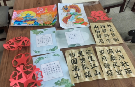 活动中,各位党员老师齐聚一堂,在一片和谐欢乐的气氛中开启了精彩纷呈的艺术创作之旅,通过自己擅长的方式向祖国表达了祝福。有的老师精心裁剪出一幅幅寓意吉祥如意、国泰民安的作品,每一件成品都承载着对祖国母亲最美好的祝愿;有的老师挥洒着笔触,将心中那份对于美好生活的向往以及对中国未来发展的无限憧憬淋漓尽致地展现出来;有的老师沉心静气地练习着行书、楷书等字体,一笔一划间流露出深厚的文化底蕴及对中华优秀传统文化的热爱之情;有的老师则书写个人成长经历,或抒发对祖国繁荣昌盛的美好愿景。随后,大家轮流展示自己的作品,并与其他成员进行了深入交流探讨。