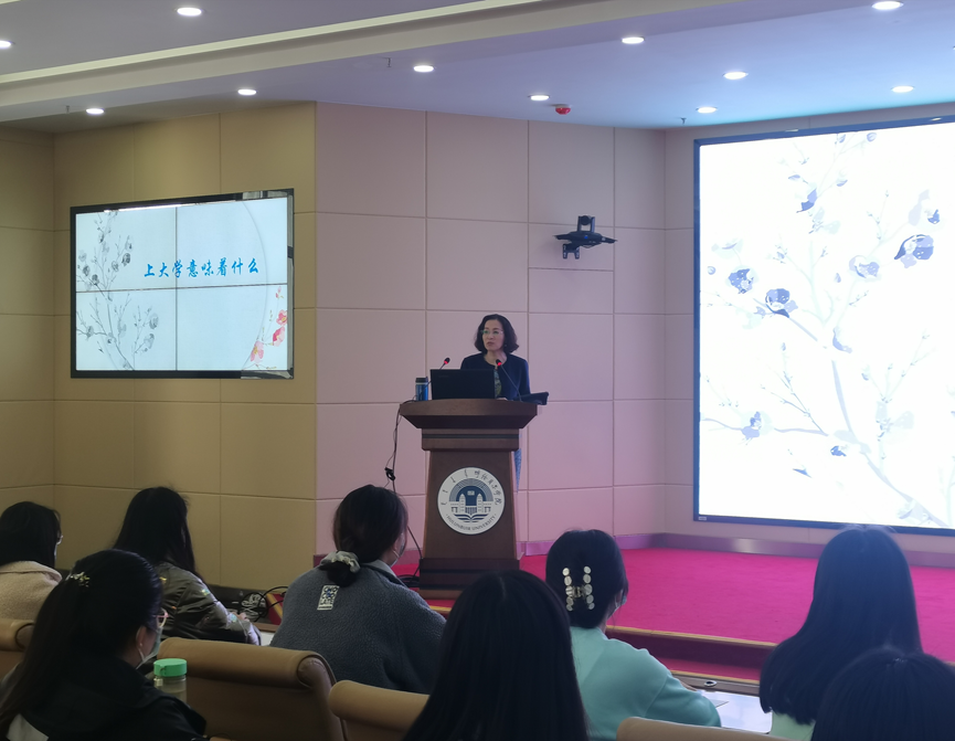 讲座一始,李院长以习近平总书记在北京大学师生座谈会上的讲话向同学们阐述了立德树人,学史增信的重要性,她提醒大家作为中华民族儿女,我们要了解中华民族历史,秉承中华文化基因。接着,李院长向大家阐述了扣好人生第一粒扣子的重要性并与同学们沟通了“如何不让自己的大学留遗憾”的话题,她鼓励同学们树立正确的学习目标,为未来做好充足准备。随后,李院长通过例举我院二战考研上岸学长的考研事例,同大家分享了考研经验,向同学们强调了心态对于考试的重要性,鼓励同学们树立目标,勇于突破瓶颈,使同学们更加认清了当前的考研形势与未来发展潜力,激励同学们为自己今后的发展做出正确选择。最后,李院长希望大家培养读好书、好读书的习惯,实现德智体美劳全面发展。